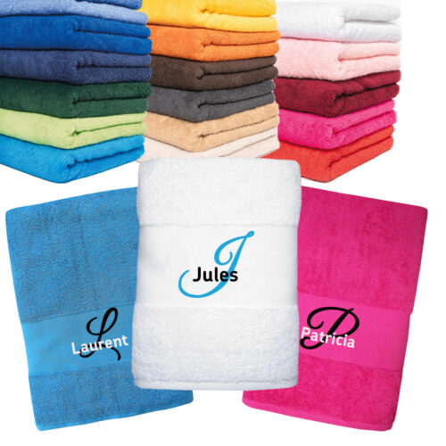 Serviette éponge personnalisée liteau fantaisie, 4 tailles, 30 coloris
