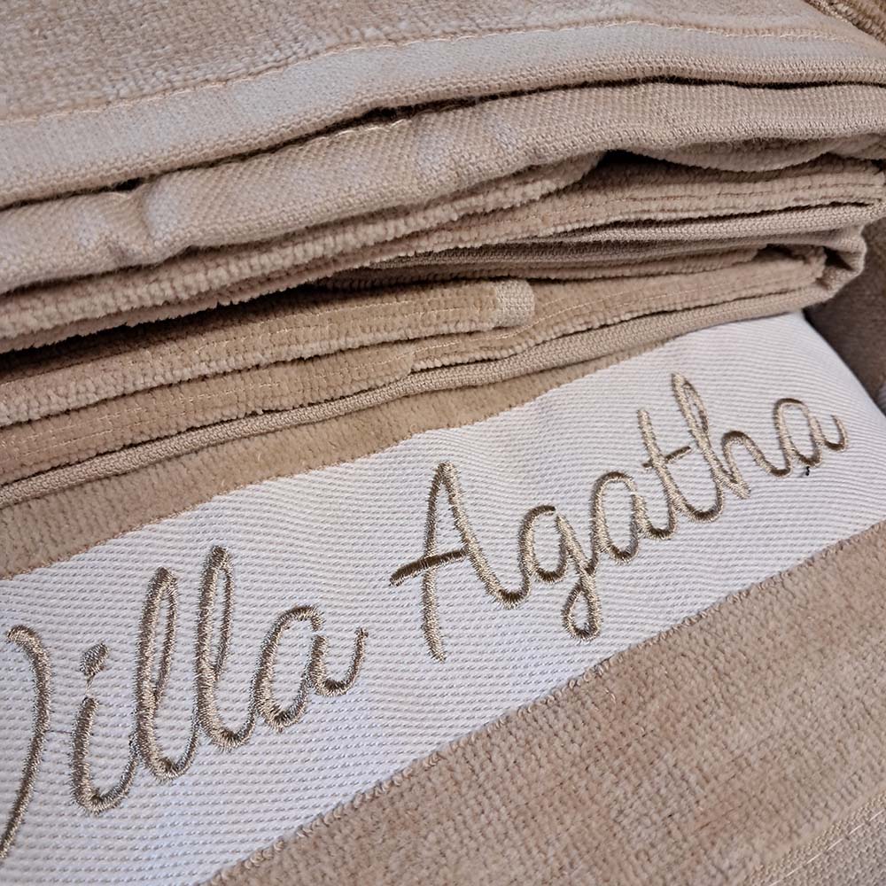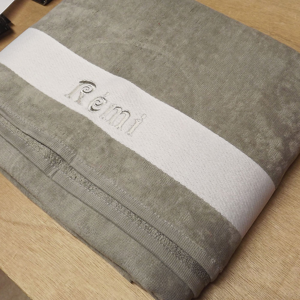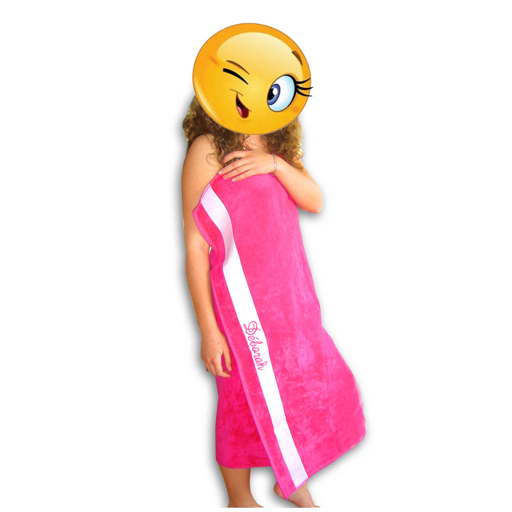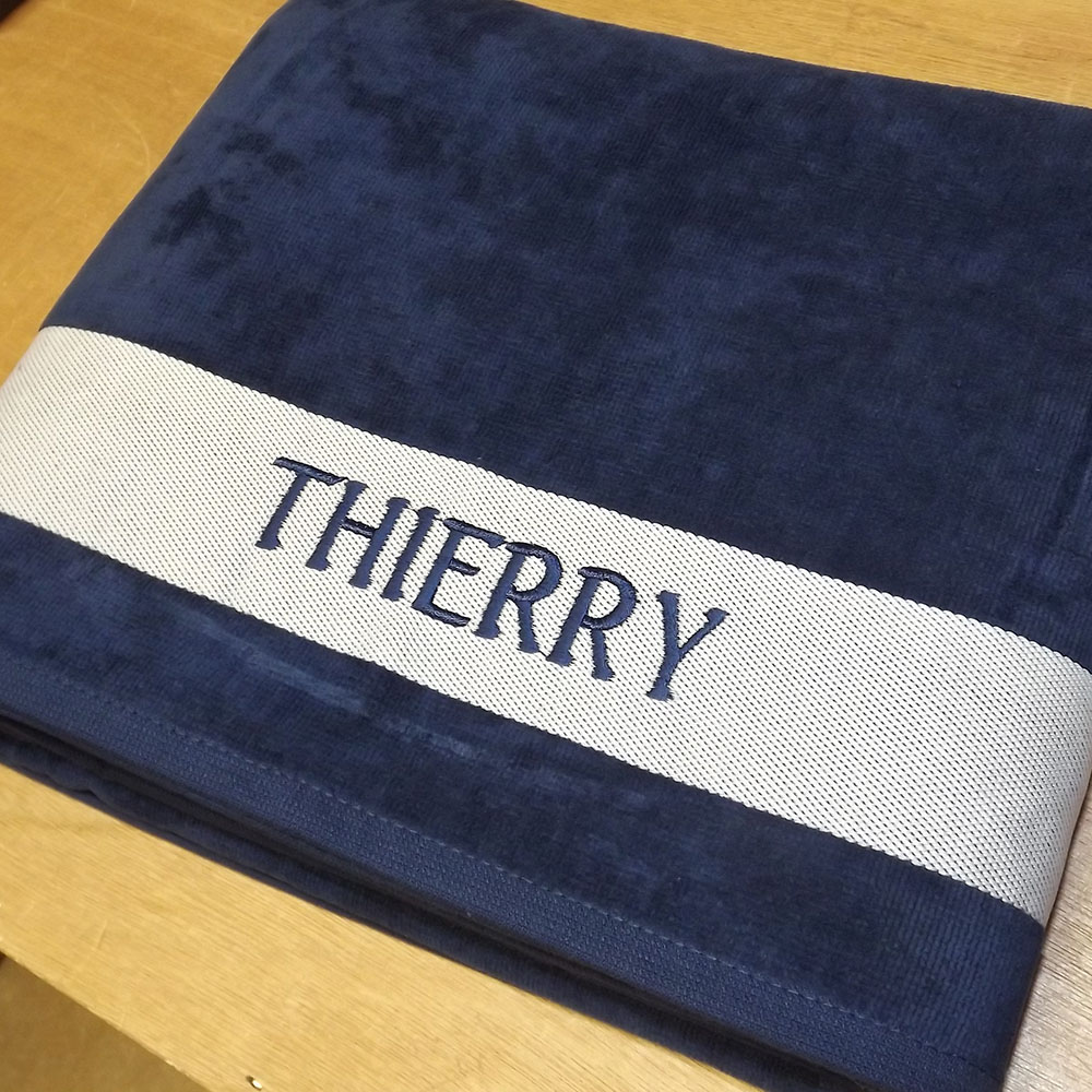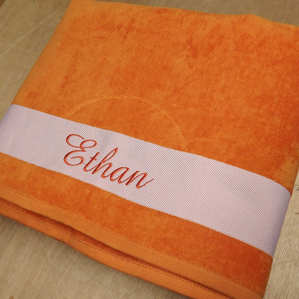Ce drap de bain personnalisé sera idéal pour vos vacances à la plage ou à la piscine, personnalisez-le avec un texte ou un prénom brodé.